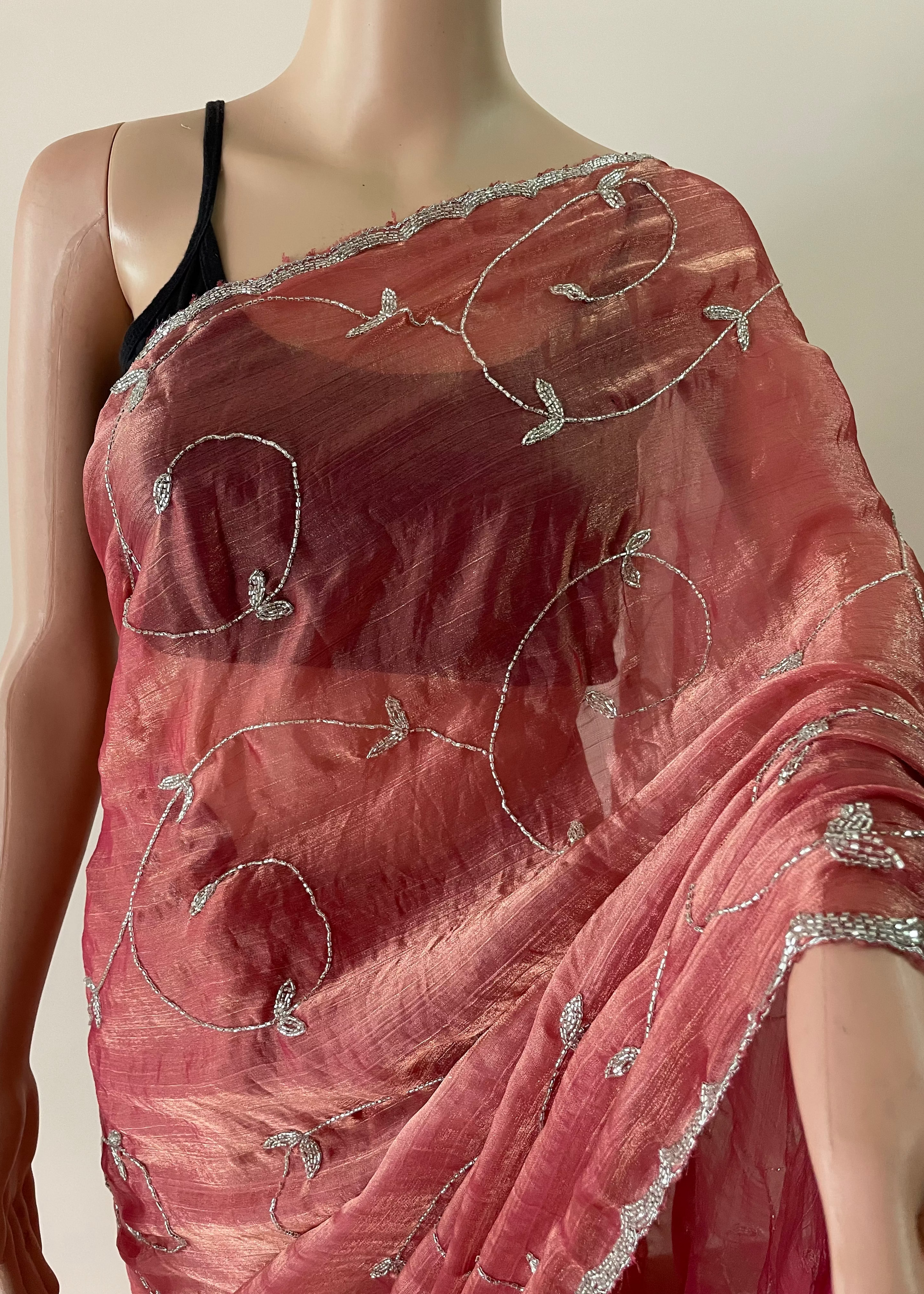Radiating soft sunshine charm, the White Moonlit Handwork Saree is crafted on a lightweight, luminous base and adorned with delicate hand embroidery. Its fresh lemon hue with subtle moonlit shimmer makes it perfect for daytime celebrations, festive brunches, and summer weddings.