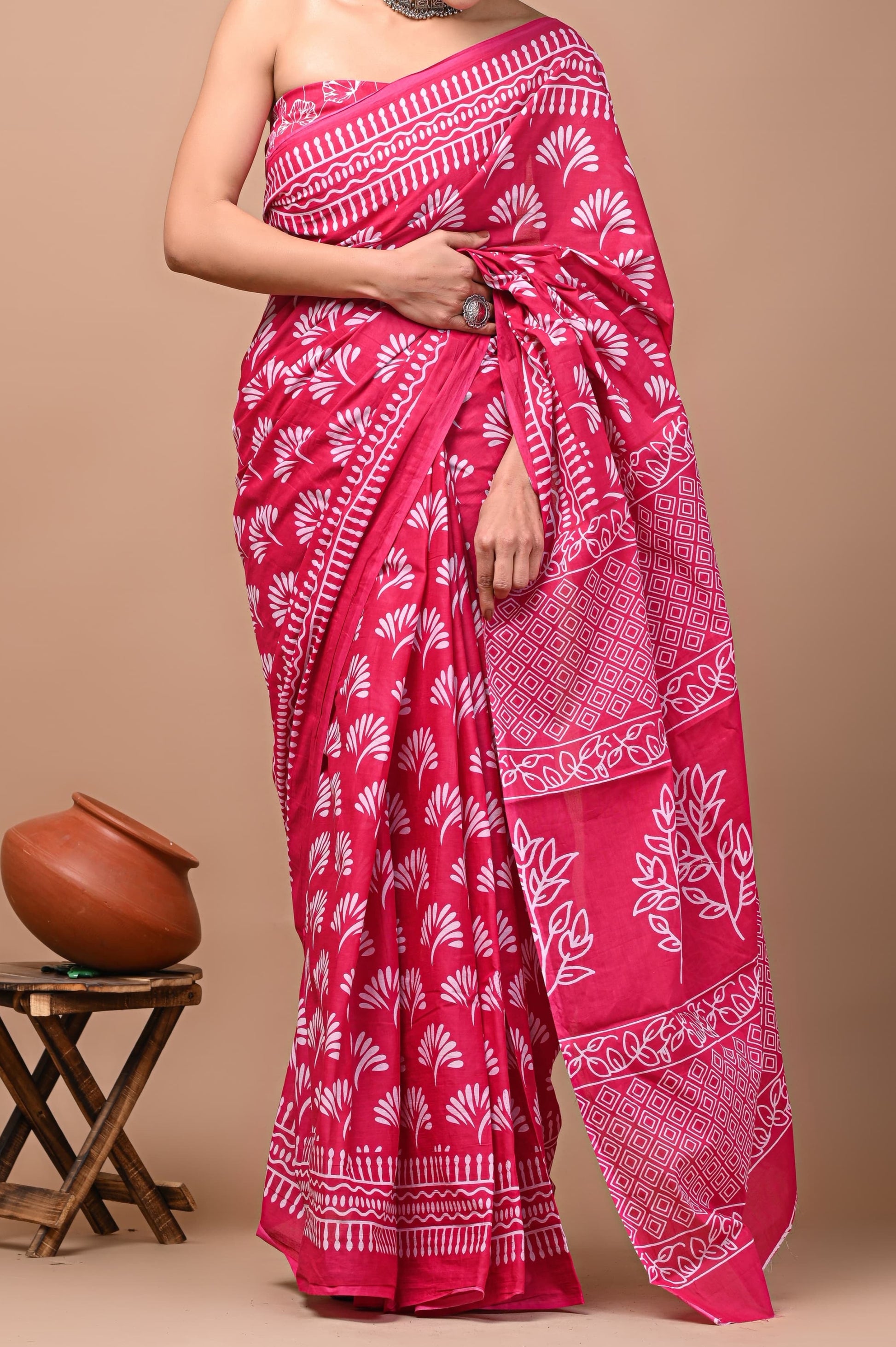Handblock printed mul cotton sarees for summer, affordable summer collection for office and everyday wear.