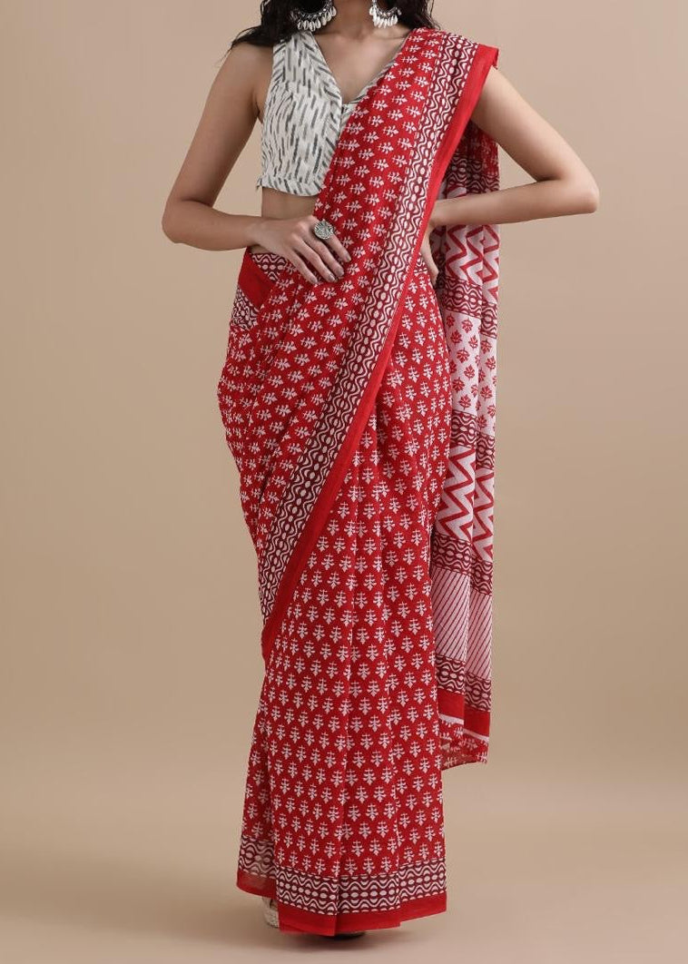 Handblock printed mul cotton sarees for summer, affordable summer collection for office and everyday wear.